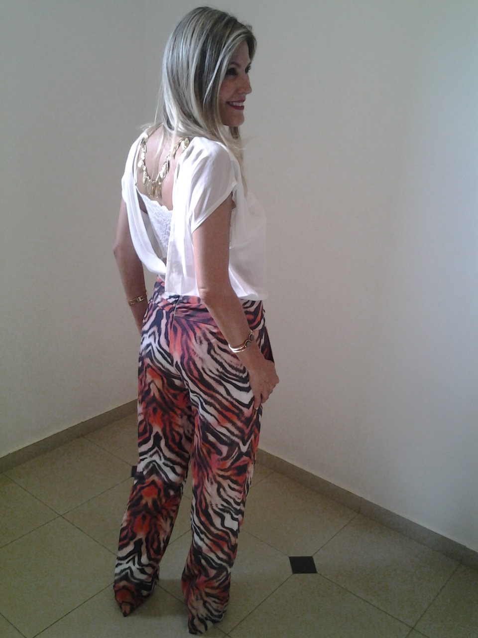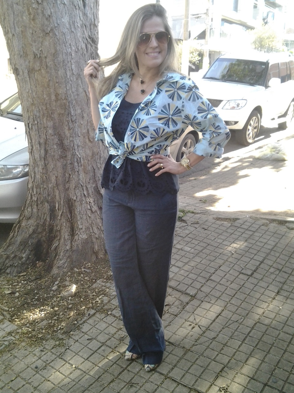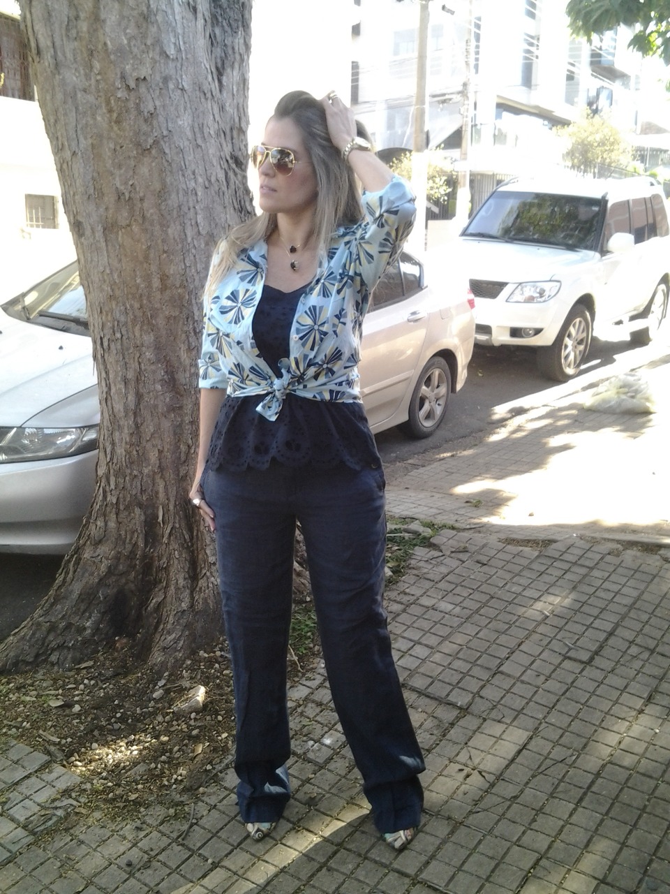 camisa estampada + regata de laise + calça de linho = mix de estampas e tecidos!!